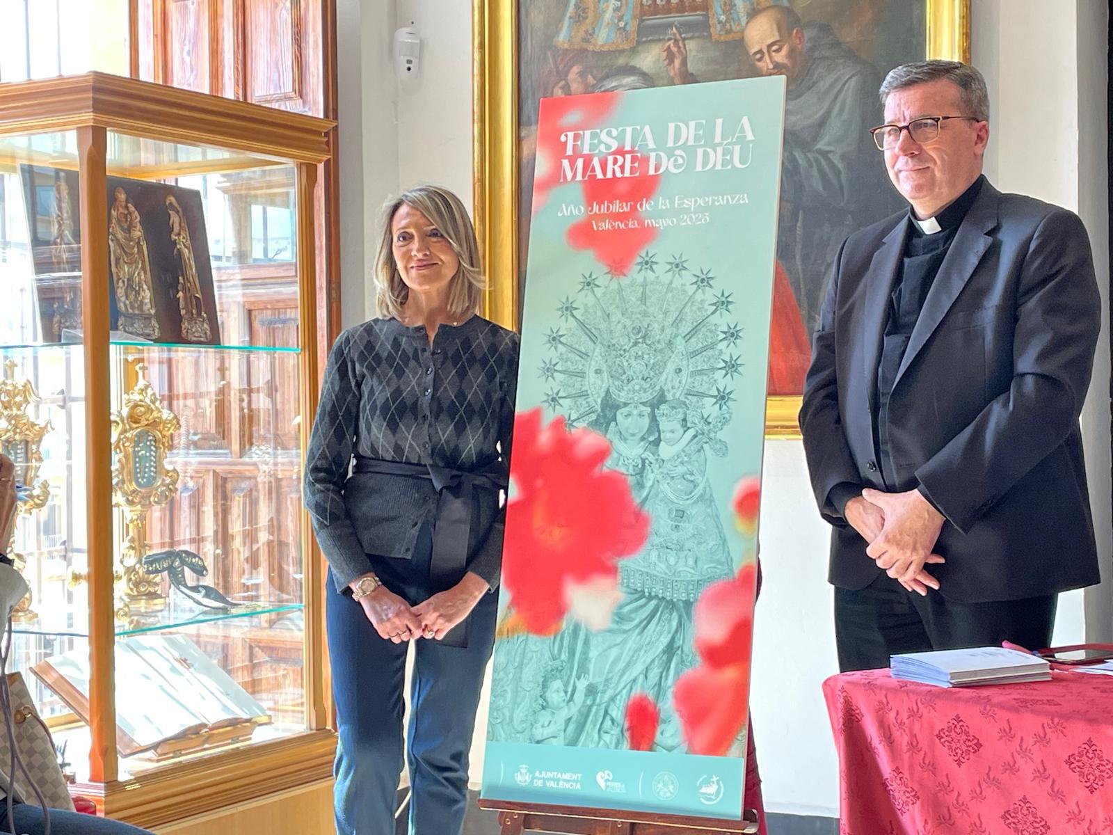 Por primera vez, la festividad de la patrona de la ciudad, la Virgen de los Desamparados cuenta con cartel propio oficial. Así se ha dado a conocer este martes en el Museo de la Basílica, donde la concejala de Fiestas y Tradiciones, Mónica Gil, y el rector de la Basílica de los Desamparados, Melchor Seguí, han descubierto la imagen que, tal como ha explicado la edila durante la presentación, “con este cartel histórico mostramos la profunda importancia que tiene para la Delegación de Fiestas y Tradiciones del Ayuntamiento de València la conservación y promoción de nuestras tradiciones culturales y festividades ancestrales que no son solo un patrimonio histórico y cultural de nuestra ciudad, sino también un elemento fundamental que nos define y nos distingue como valencianos”.
