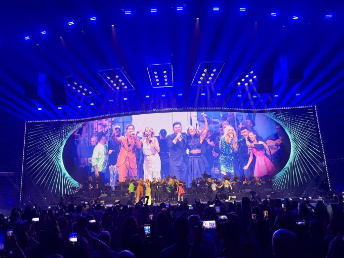 Emocionante actuación de David Bisbal en el Roig Arena junto a Sole Giménez, Malú, Miguel Poveda y el resto de cantantes. Esta fue una de las actuaciones más aplaudidas del espectáculo.
