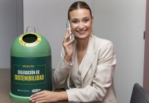 La Fallera Mayor de València, Consuelo LLobell, que ha recibido el aderezo de manos del gerente de zona de Ecovidrio, Roberto Fuentes, ha declarado que “este trabajo es una muestra de que el vidrio puede tener muchas vidas y hay que aprovecharlas.