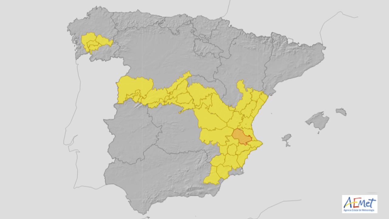 «Mañana la atmósfera inestable será propicia para el desarrollo de nubes de evolución y chubascos acompañados de tormenta. Atención al centro y este peninsular porque además podrían ser de fuerte o muy fuerte intensidad, de granizo y con rachas de viento fuertes o muy fuertes», alerta la agencia por medio de las redes sociales.