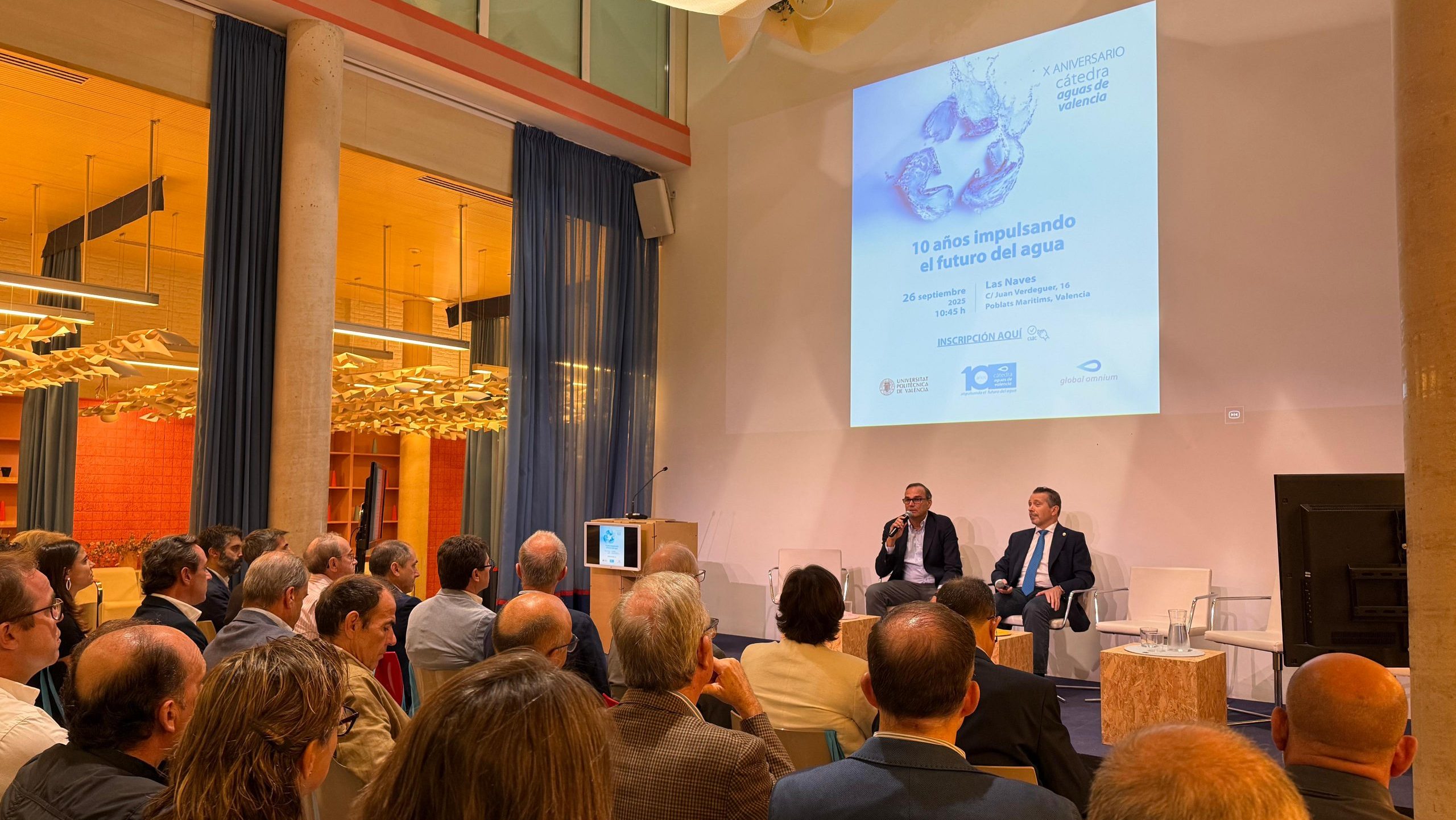 La Cátedra Aguas de Valencia ha celebrado su décimo aniversario con un acto junto con la Universitat Politècnica de València. El encuentro ha reunido a representantes del mundo académico y empresarial. Entre ellos han estado José Esteban Capilla, rector de la Universitat Politècnica de València, y Vicente Fajardo, director general de Global Omnium. Ambos han destacado la importancia de reforzar la relación entre universidad y empresa.