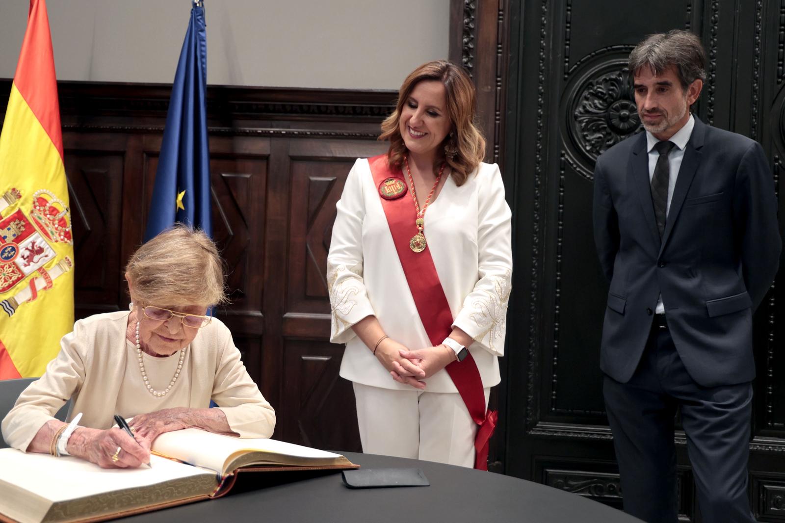 A continuación, María José Catalá y José Luis Moreno han entregado el título de Hija Predilecta a Pilar Roig Picazo, catedrática de Conservación y Restauración dela Universitat Politècnica de València (UPV). El galardón reconoce su larga carrera académica, que incluye la dirección de más de cuarenta tesis doctorales, la autoría de dieciséis libros, además de devolver a su esplendor la cúpula de la basílica de la Virgen de los Desamparados; las pinturas de Antonio Palomino en la iglesia de los Santos Juanes; así como las pinturas murales, esculturas y revestimiento ornamental de la nave central de la iglesia de San Nicolás, entre otras acciones.