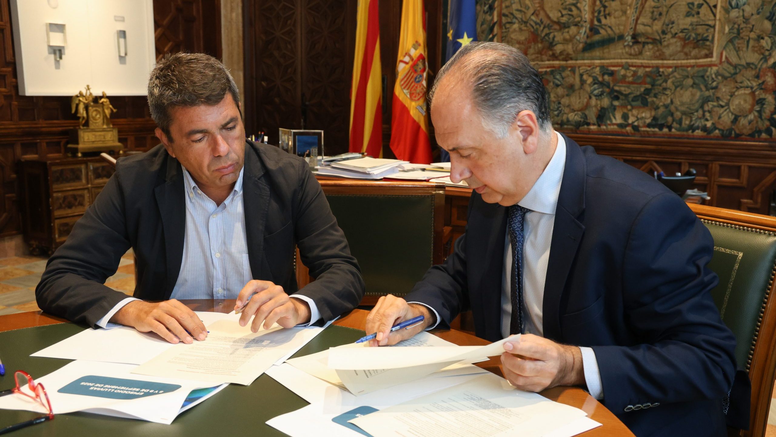 El president de la Generalitat, Carlos Mazón, se ha reunido con el conseller de Emergencias e Interior, Juan Carlos Valderrama, con motivo del episodio de lluvias y tormentas previsto a partir de hoy en la Comunitat Valenciana, en el que se le ha trasladado al jefe del Consell las distintas medidas que se están tomando desde Emergencias.