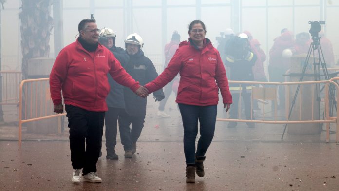 Este lunes, 3 de marzo, la Plaza del Ayuntamiento de Valencia no ha podido vibrar con la mascletà, protagonizada por la pirotecnia Alto Palancia. La lluvia que azota la ciudad ha complicado el disparo y ha impedido vivir un espectáculo de calidad que contado con diversas complicaciones por el temporal.