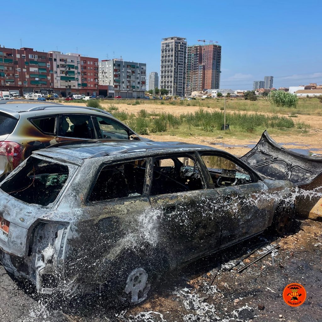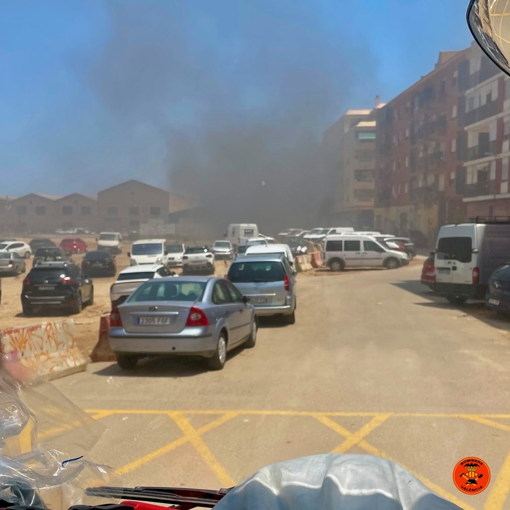 Arde un vehículo a las afueras de Valencia, los bomberos han tenido que actuar en la calle Manuel Iranzo, muy cerca del municipio de Alfafar. El vehículo estaba estacionado en un descampado que sirve como aparcamiento.