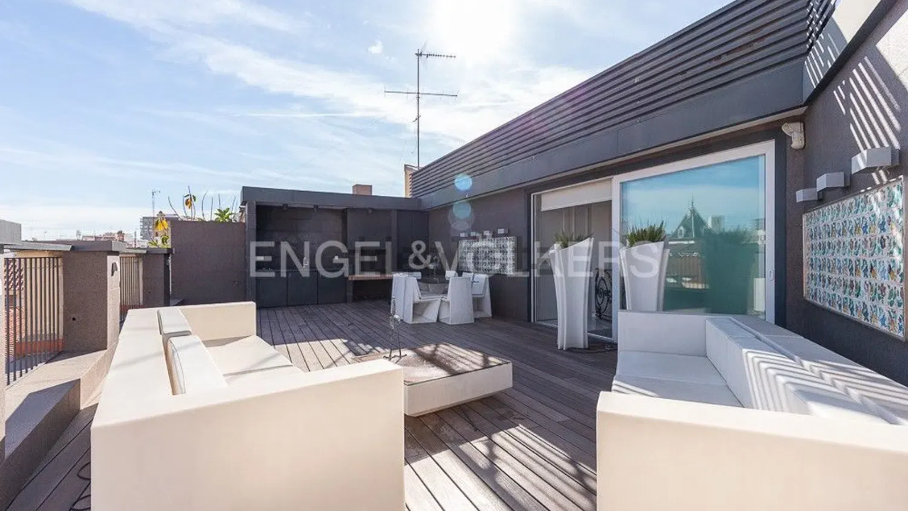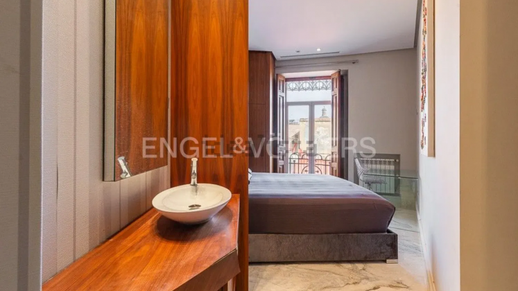 Este ático de 590 m2 se sitúa en un edificio señorial de 1920 ubicado en Ciutat Vella y destaca por sus amplias dimensiones y la calidad de sus acabados. El ático de Engel & Völkers cuesta 4,7 millones de euros y cuenta con cinco dormitorios, tres de ellos con baño en suite, además de una habitación de invitados y otra destinada al servicio, ambas con baño privado.