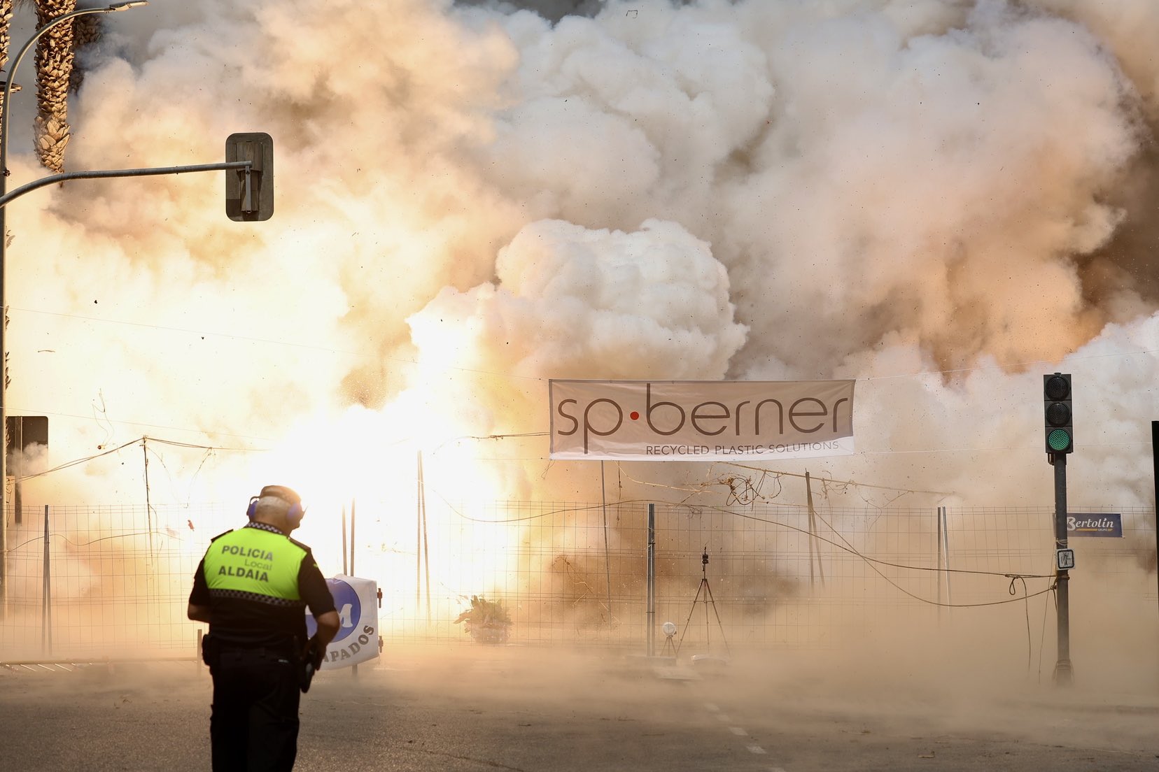 Aldaia ha disparado la mascletà más potente de la historia en honor al Cristo de los Necesitados. Los asistentes han disfrutado de 1.300 kilos de pólvora. La Pirotècnia Mediterráneo ha disparado con 6 veces más potencia que lo habitual en la plaza del Ayuntamiento.