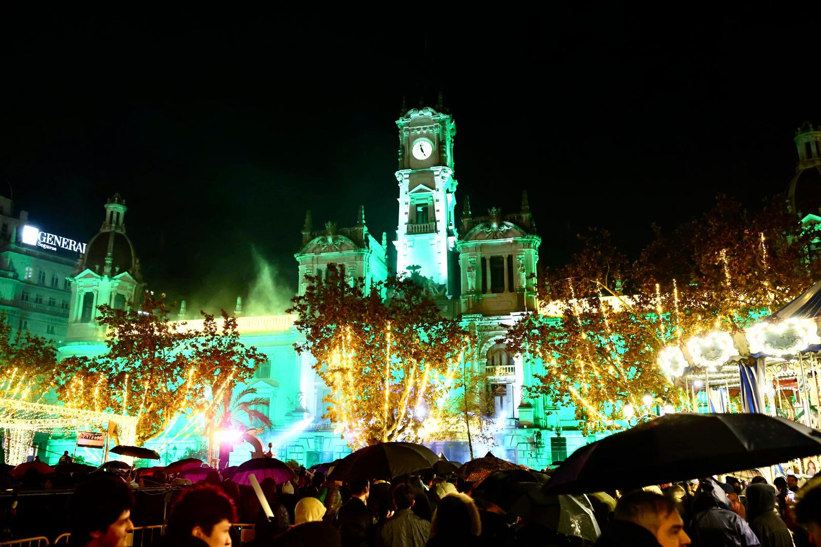 Por la noche, la plaza del Ayuntamiento acogerá la celebración de Nochevieja. El recinto se cerrará al público a partir de las 20.30 horas y el acceso se abrirá desde las 22.00 horas a través de los cinco puntos habilitados: Marqués de Sotelo, passeig de Russafa, Correus, Barques y Maria Cristina. En estos puntos de acceso se repartirán 10.000 vasos reciclables con el objetivo de evitar la entrada de envases de cristal y reforzar la seguridad durante la celebración.
