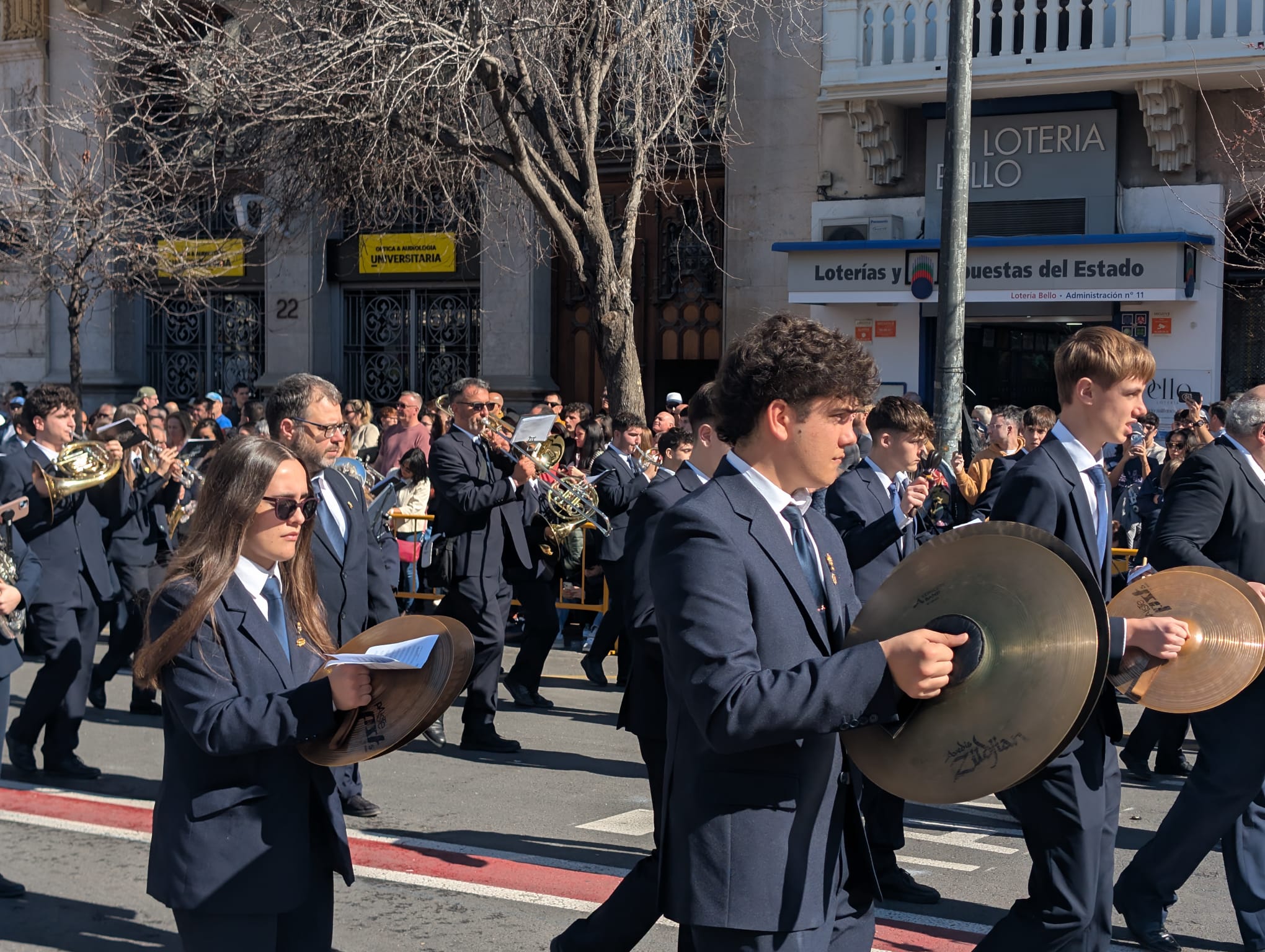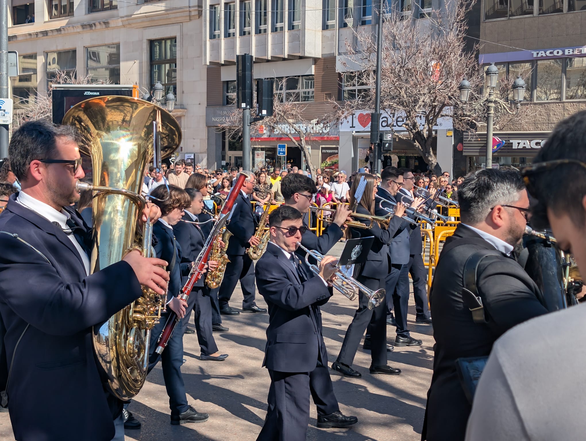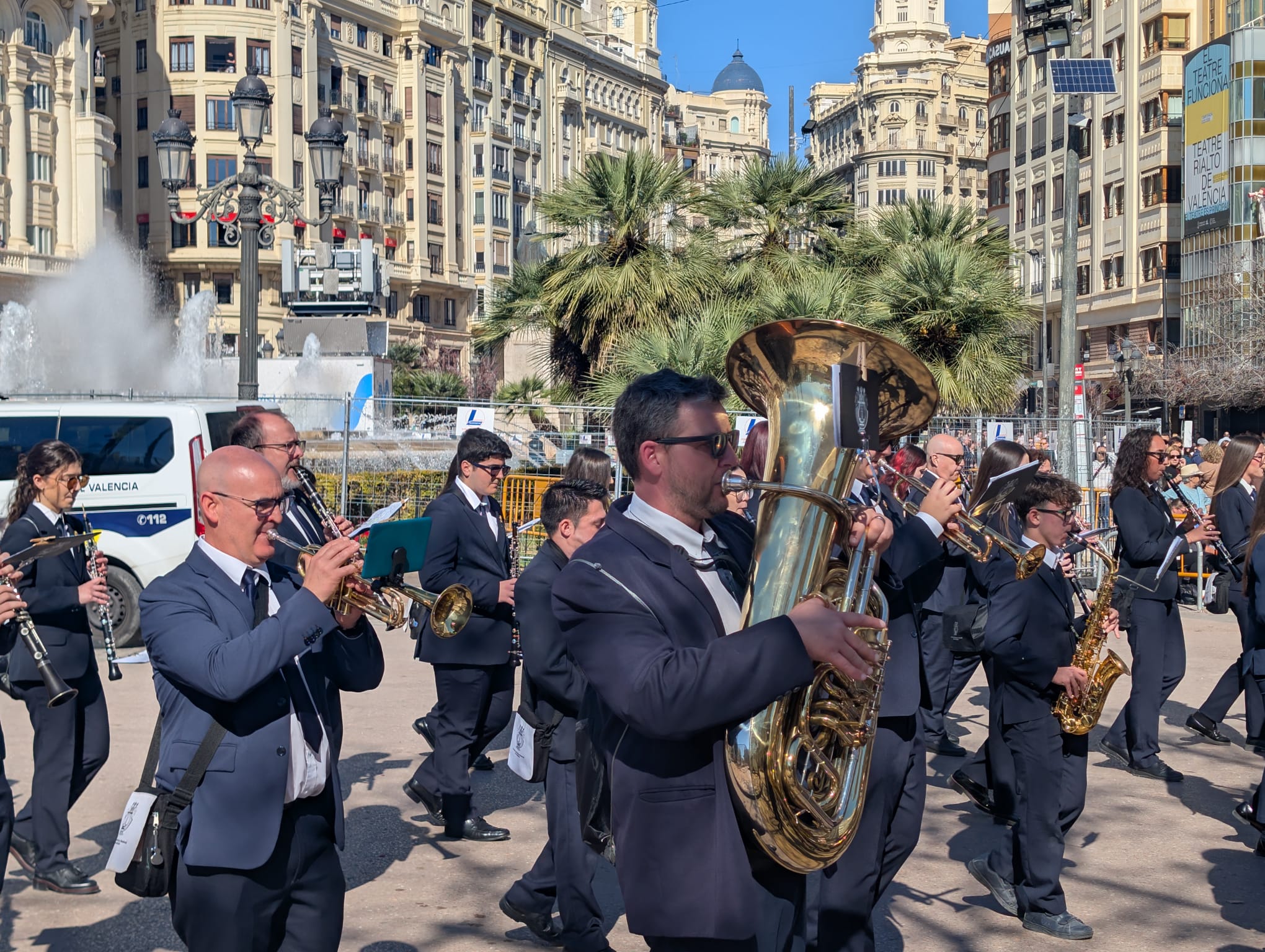 Concretamente, han formado parte del desfile la Societat Musical Poblats Marítims, la Societat Musical Unió de Pescadors El Cabanyal, la Unió Musical l’Horta de Sant Marcel·lí, la Unió Musical Santa Cecília de Castellar-l’Oliveral, la Societat Musical de Benifaraig, la Unió Musical Centre Històric, la Agrupació Musical de Massarrojos, la Agrupació Musical Benicalap, la Agrupació Musical Carrera Font de Sant Lluís y la Agrupació Musical Gayano Lluch.