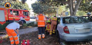 Dos heridos tras chocar un vehículo contra un árbol en Picanya