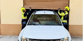 Un coche queda atrapado por el bloqueo de una persiana en...