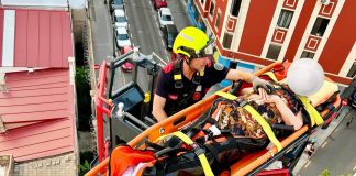 Los bomberos rescatan a una mujer 84 años a una altura...
