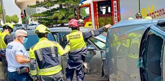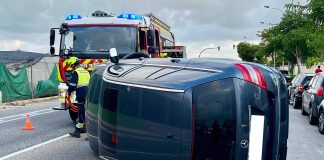Vuelca un coche tras un accidente junto al Palau de Les...