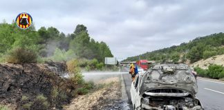 Un vehículo arde en la carretera A-35 cerca de Vallada