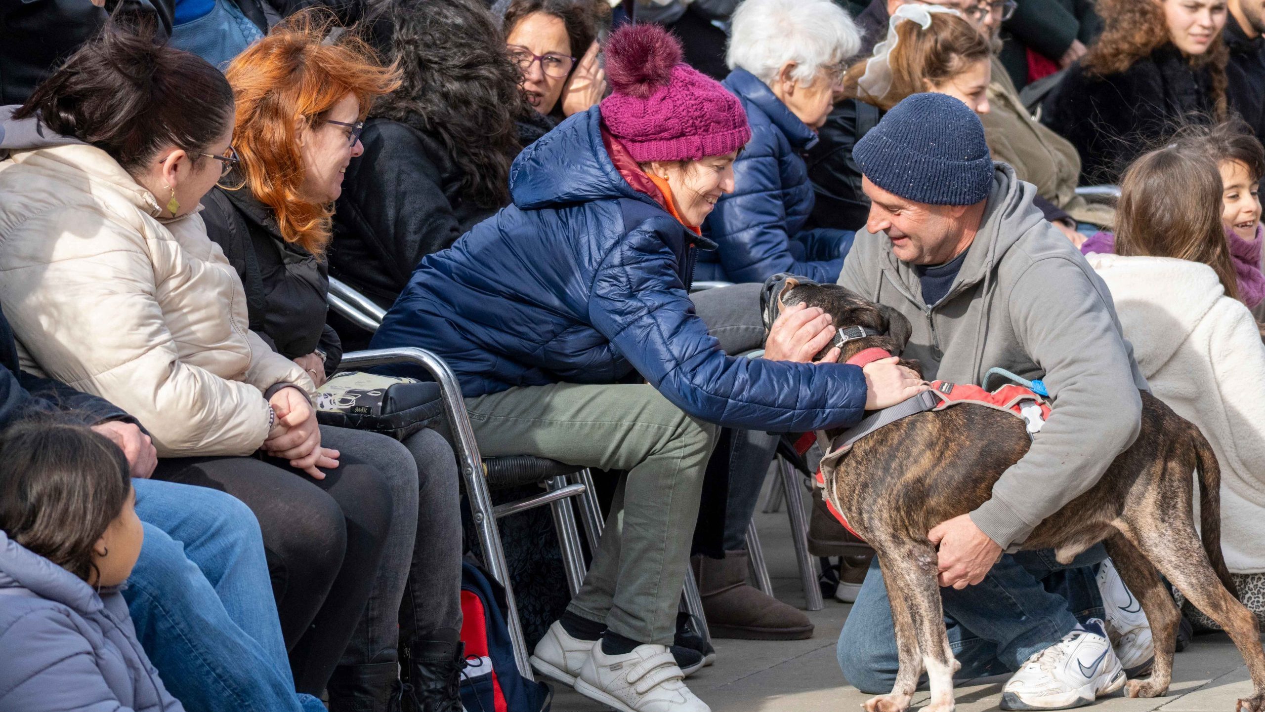 Algunos perros mostraron nervios al principio. El contacto con el público cambió la escena. Llegaron las caricias, los abrazos y los lametones. El ambiente se volvió cercano y muy comprometido con el bienestar animal.