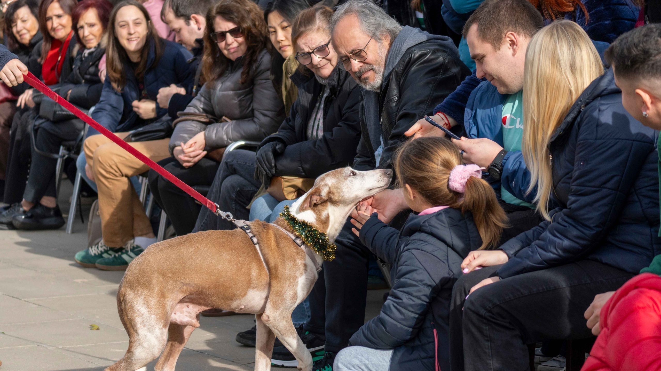 La mañana arrancó con nubes y llovizna, aunque finalmente acabó saliendo el sol. Más de 30 perros desfilaron ante el público con historias duras y, al mismo tiempo, llenas de esperanza. Luz llegó tras sufrir un fuerte impacto, posiblemente un atropello. Leo estuvo a punto de ahogarse en una acequia. Caín vivió atado en un campo hasta que la policía lo rescató. Junto a ellos caminaron Grey, Dior, Diana, Baltasar o Café. Todos buscaron lo mismo: una oportunidad.
