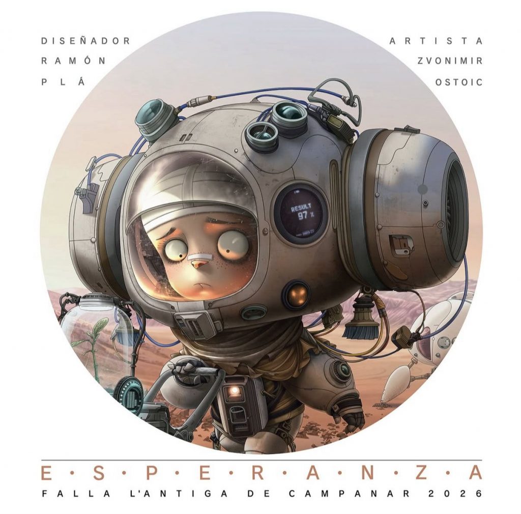 Josué Beitia es el artista de la comisión de L’Antiga de Campanar, cuenta con una inversión de 200.000 euros. El lema es ‘Sentiment’, término que emplean con un corazón que sustituye al punto de la ‘i’ y que parte en dos el lema: ‘sent’ i ‘ment». En el centro, un personaje mide el tiempo de nuestra vida. Este va montado en un coche, con una reinterpretación de ‘Regreso al futuro