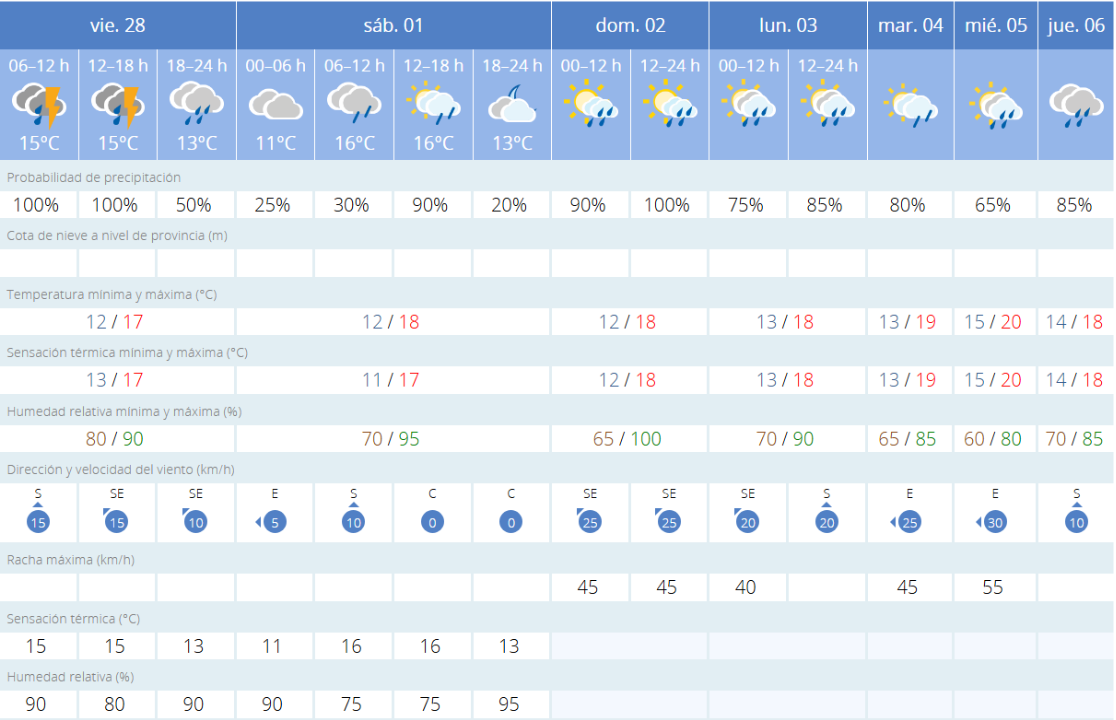 De cara a la próxima semana todavía hay mucha incertidumbre aunque por el momento se prevé que las precipitaciones continúen, al menos hasta el jueves.