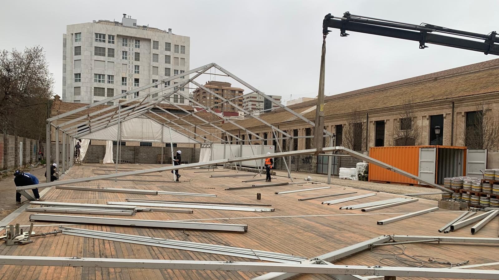 Gabriel Giménez, presidente de la comisión, ha explicado para 7teleValencia que espera que en dos días ya esté montada la carpa, puesto que este fin de semana ya empiezan los actos festivos en su interior.