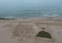 Voluntarios de Greenpeace han colocado a primera hora de esta mañana una mascarilla gigante de 15 metros cuadrados en la cara de Gulliver de Valencia. La mascarilla está realizada con la mítica tela de pancartas de la ONG, puede leerse “Pandemia Climática” en la cara de Gulliver. Junto al literario personaje de 70 metros de largo otro mensaje ha completado el llamamiento de la organización: “La inacción nos ahoga”.