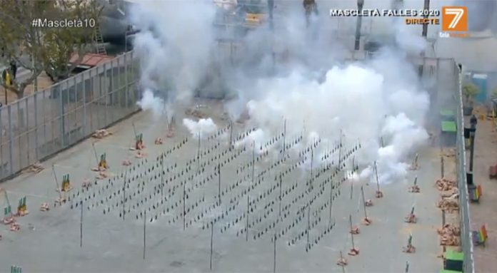 Este sábado la mascletà vertical pone en marcha los actos de las fallas de 2020. El viento ha impedido realizar la parte vertical con...