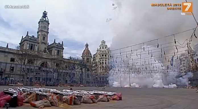 Un pequeño fallo de conexión en la parte digital no afecta al impacto de la mascletà de este 15 de marzo