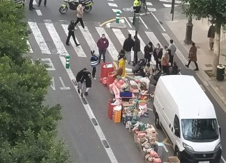 Los okupas de la calle Colón cortan el tráfico para repartir...
