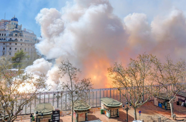 El punto violeta de la plaza de España ha sido el más concurrido de València durante las fallas