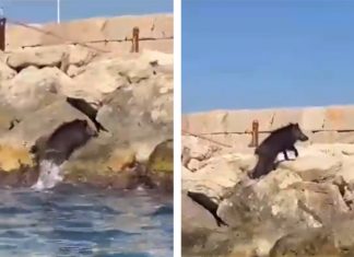 VÍDEO | Un loro intenta colarse en un autobús de la...