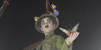 Charles Chaplin ya vigila la plaza del Ayuntamiento: así ha sido la «descoberta» de la falla municipal