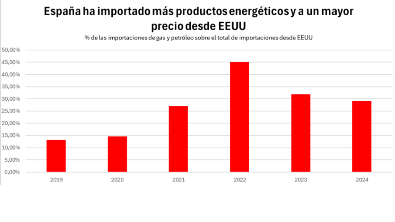 El informe de CCOO también subraya que el saldo comercial de España con Estados Unidos ha estado en déficit durante un largo período. Esta brecha se ha ampliado desde el inicio de la guerra en Ucrania en 2022, ya que el aumento de precios y volúmenes de importaciones estadounidenses, especialmente de combustibles fósiles, ha generado un impacto significativo. En la actualidad, el déficit comercial con Estados Unidos representa un 0,6% del Producto Interior Bruto (PIB) español.
