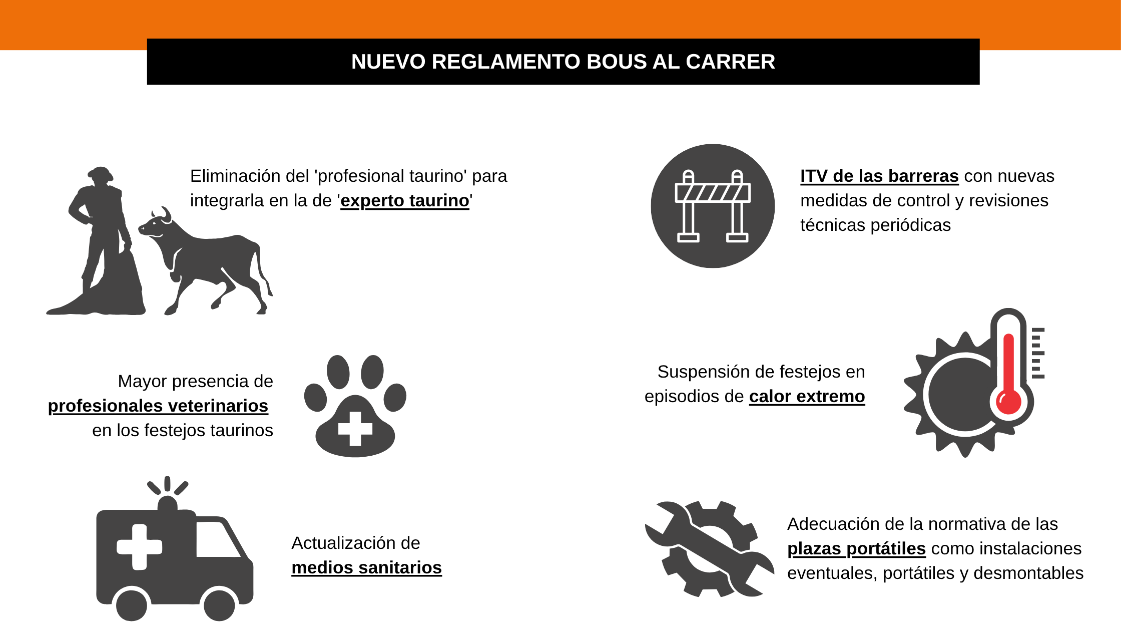 Entre las novedades figuran la redefinición de conceptos, la eliminación de la figura del ‘profesional taurino’ para integrarla en la de ‘experto taurino’, y una mayor presencia de profesionales veterinarios en los festejos. También se prevé actualizar los medios sanitarios, regular las plazas portátiles y reforzar los controles sobre las barreras de seguridad, con revisiones técnicas periódicas y periodos de adecuación.
