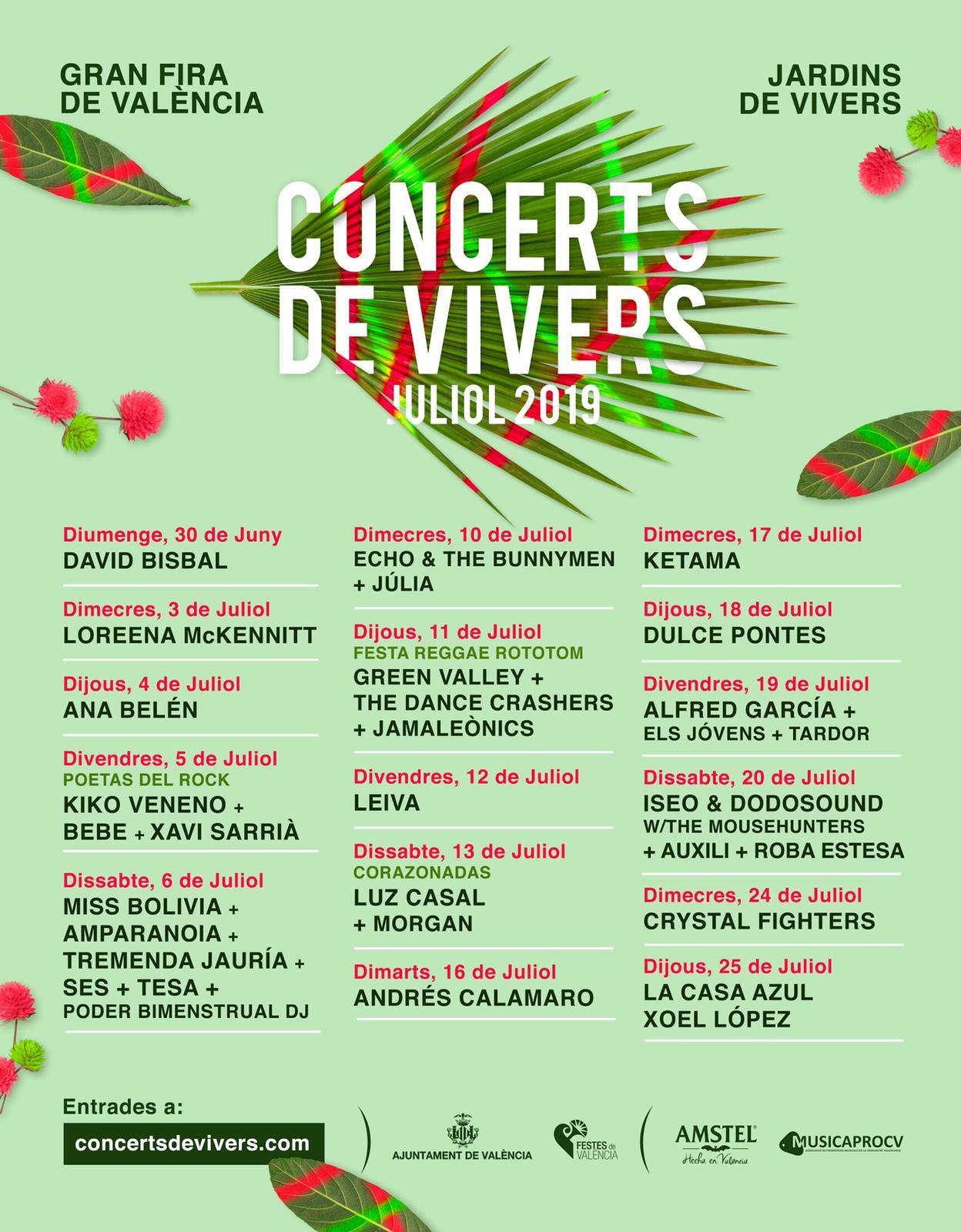 Destacats artistes internacionals com Luis Fonsi o Crystal Fighters es pujaran al mateix escenari que Andrés Calamaro, Aitana o Leiva, que ja ha esgotat les entrades per al dia 12. A Alfred García ho abrigallaran a València grups de casa com Els Jovens o Tardor.