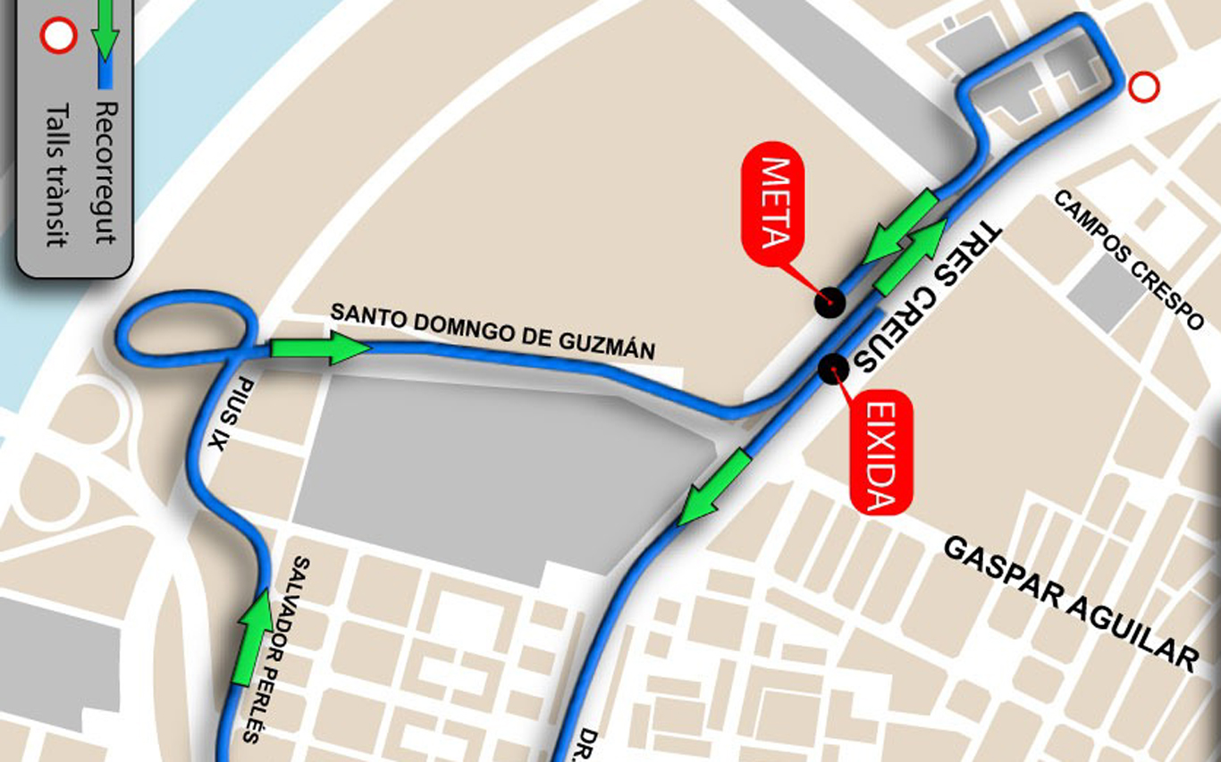 Cortes de tráfico este domingo en Sant Marcelino y San Isidro por su tradicional «Volta a peu». El montaje de la zona de salida implicará, desde las 6:00 horas, el corte al tráfico de la avenida de Tres Cruces sentido San Vicente Mártir (tramo entre Campos Crespo y Gaspar Aguilar). El corte se mantendrá, previsiblemente, hasta las 11:15 horas.