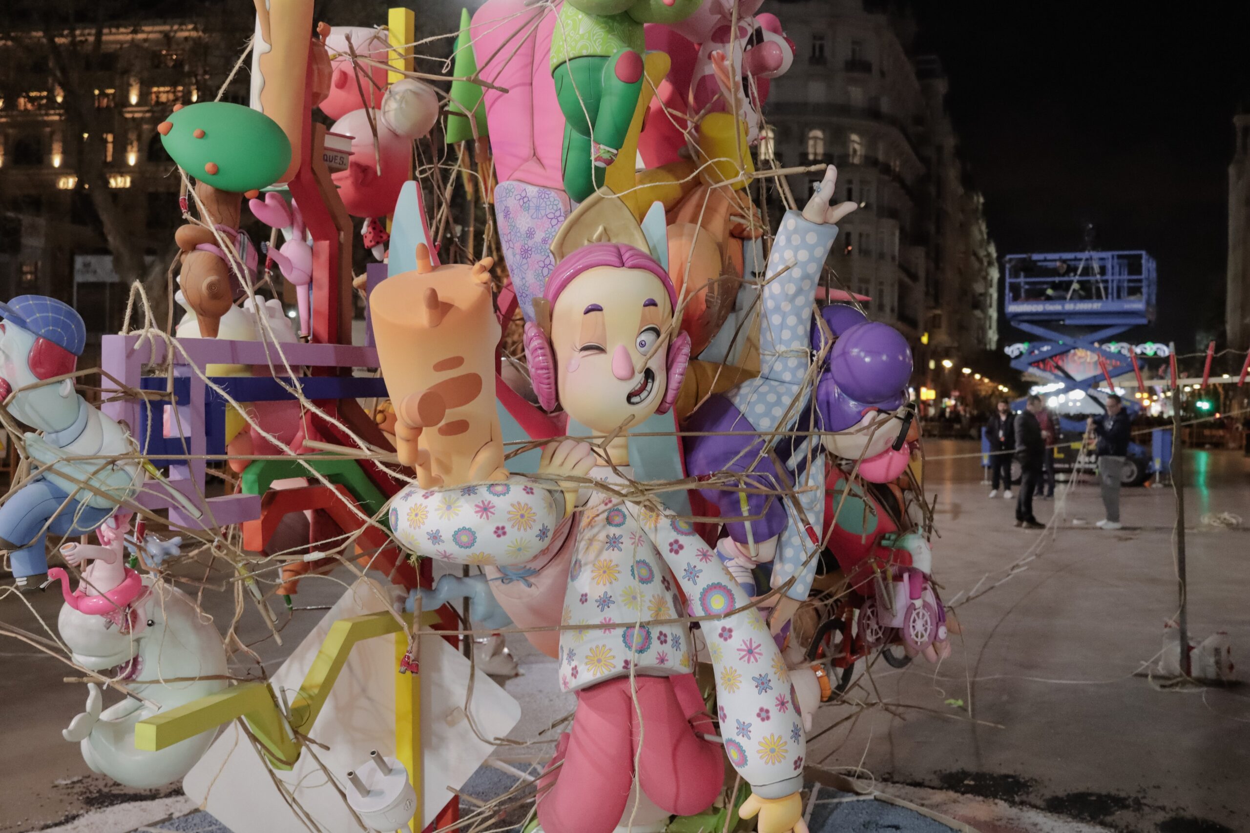 La falla municipal infantil de Valencia ha ardido esta noche entre aplausos y emoción, poniendo fin a varios días en los que “Valencia es mou” ha conquistado a pequeños y mayores en la plaza del Ayuntamiento. La obra, plantada por el artista Mario Pérez y diseñada por el ilustrador Paco Camallonga, se despidió envuelta en llamas tras convertirse en uno de los espacios más visitados y participativos de estas Fallas.
