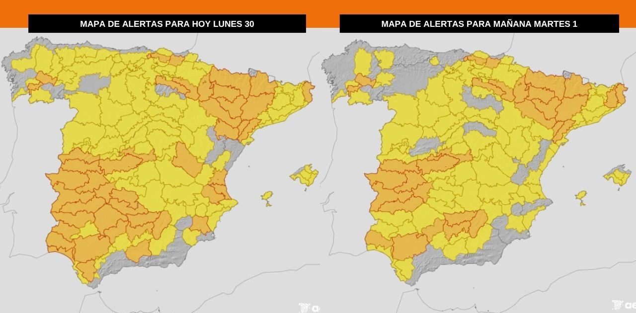 Así, la AEMET mantiene para hoy alerta naranja y para mañana y pasado alerta amarilla por temperaturas extremas.