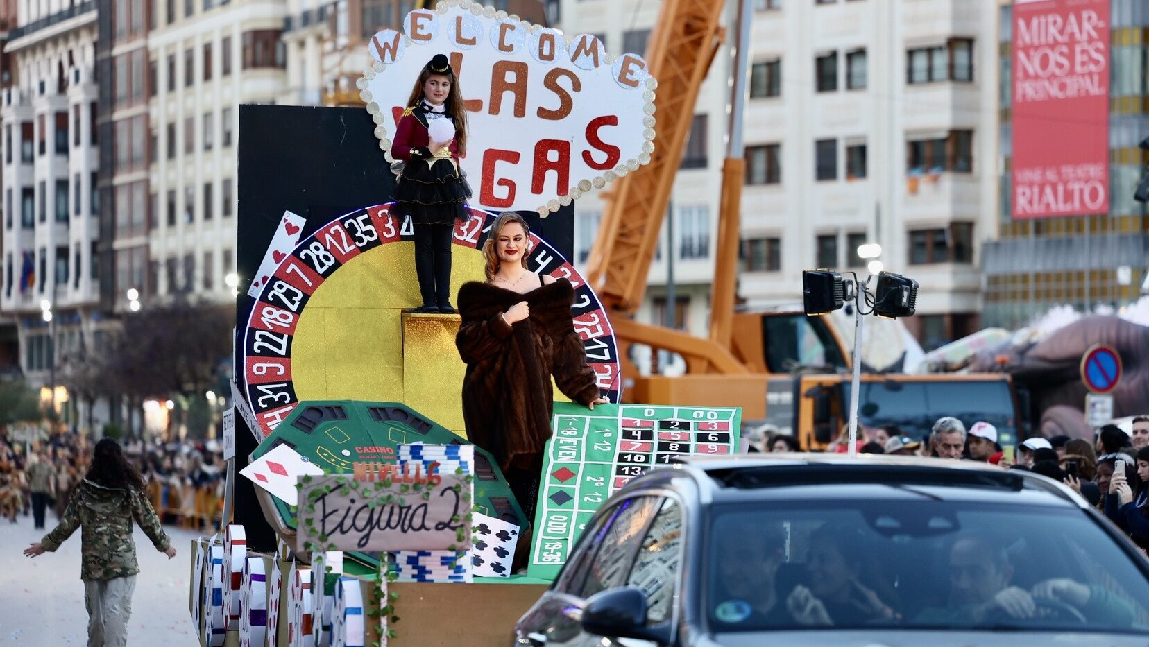 Un año más, la cabalgata mantiene su esencia como desfile satírico en el que las comisiones falleras representan, a través de disfraces, carrozas y montajes escénicos, parodias sobre la actualidad política, social y cultural.