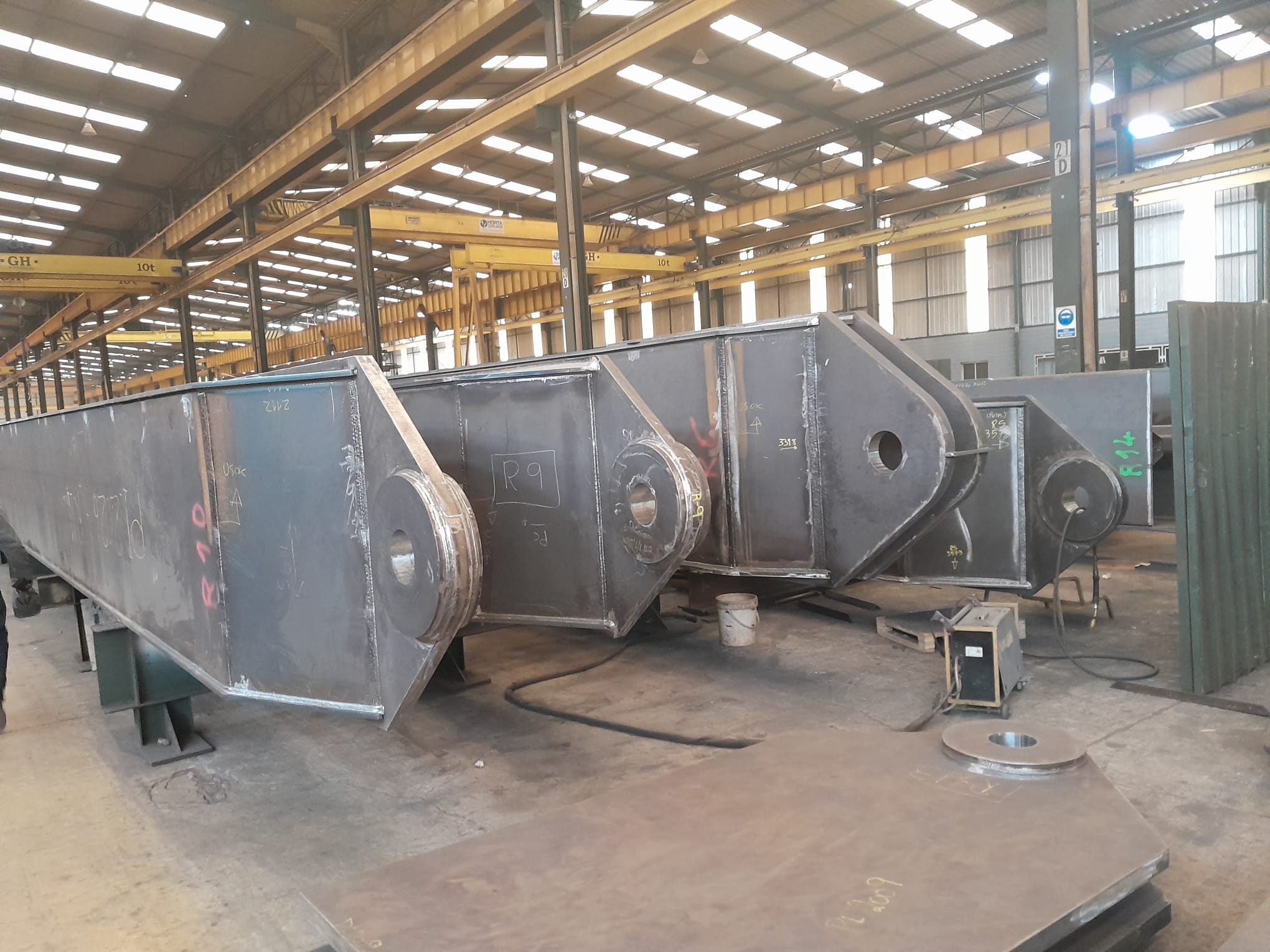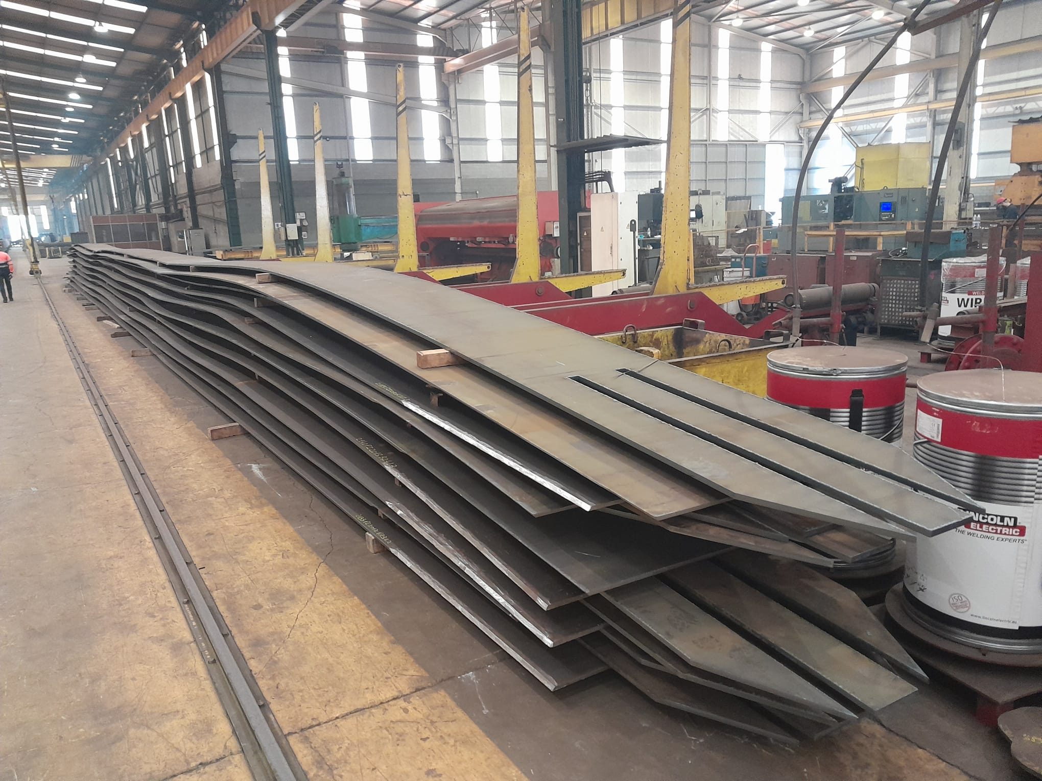 La cubierta del Nou Mestalla tendrá un peso total de 4.800 toneladas y se sustentará sobre 50 pilares de acero S3. Estos actuarán como columnas principales de la fachada. Estas piezas —de sección rectangular cerrada, con dimensiones de entre 1.200 x 760 mm y 1.400 x 850 mm— estarán formadas por placas armadas con rigidizadores longitudinales y transversales, garantizando una resistencia estructural de máximo nivel.
