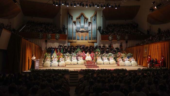 Las primeras filas se reservan para las Falleras Mayores de las comisiones con representantes en la Corte de Honor y para la comisión de las Falleras Mayores de València. Asimismo, los laterales del escenario están destinados a los familiares de las protagonistas.
