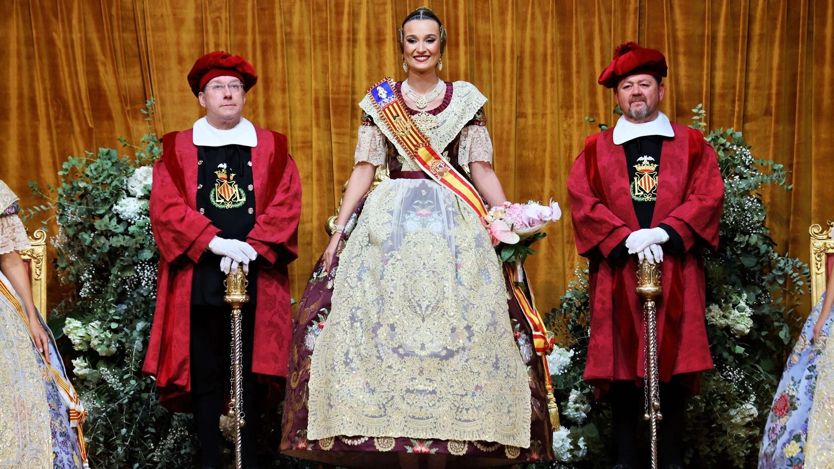 El saludo de las Falleras Mayores de València durante la Exaltación tiene un significado especial, ya que será la primera vez que saluden al público luciendo la banda oficial que las acredita como máximas representantes de las Fallas.