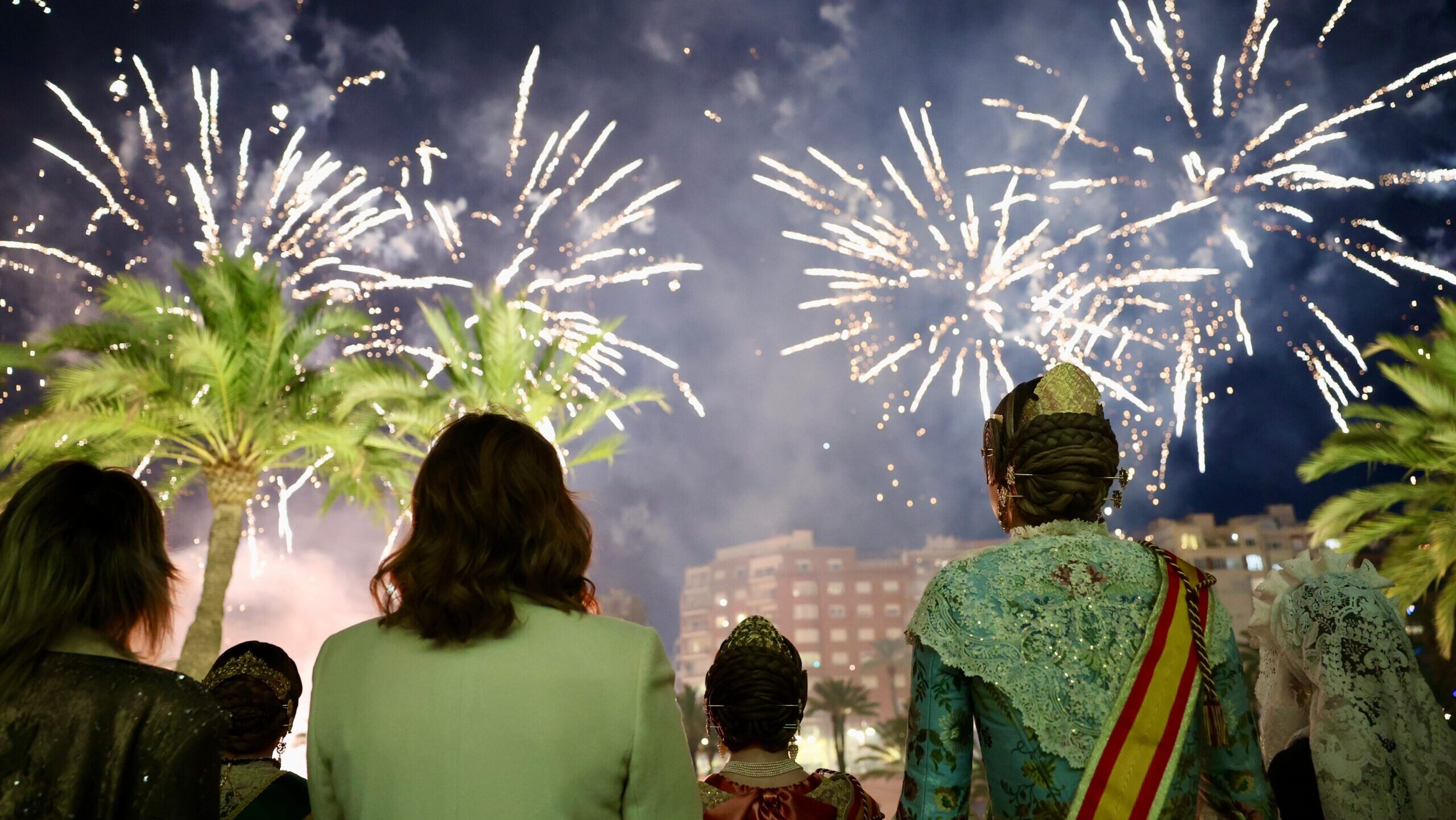Al finalizar ambas Exaltaciones, las Falleras Mayores de València y sus Cortes de Honor se dirigen al exterior del Palau de la Música, donde tiene lugar un espectáculo pirotécnico.