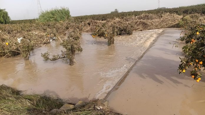 Los cultivos más afectados por el temporal incluyen cítricos, caqui, viña, olivar, frutos secos, frutales, hortalizas y viveros de flor y planta ornamental.