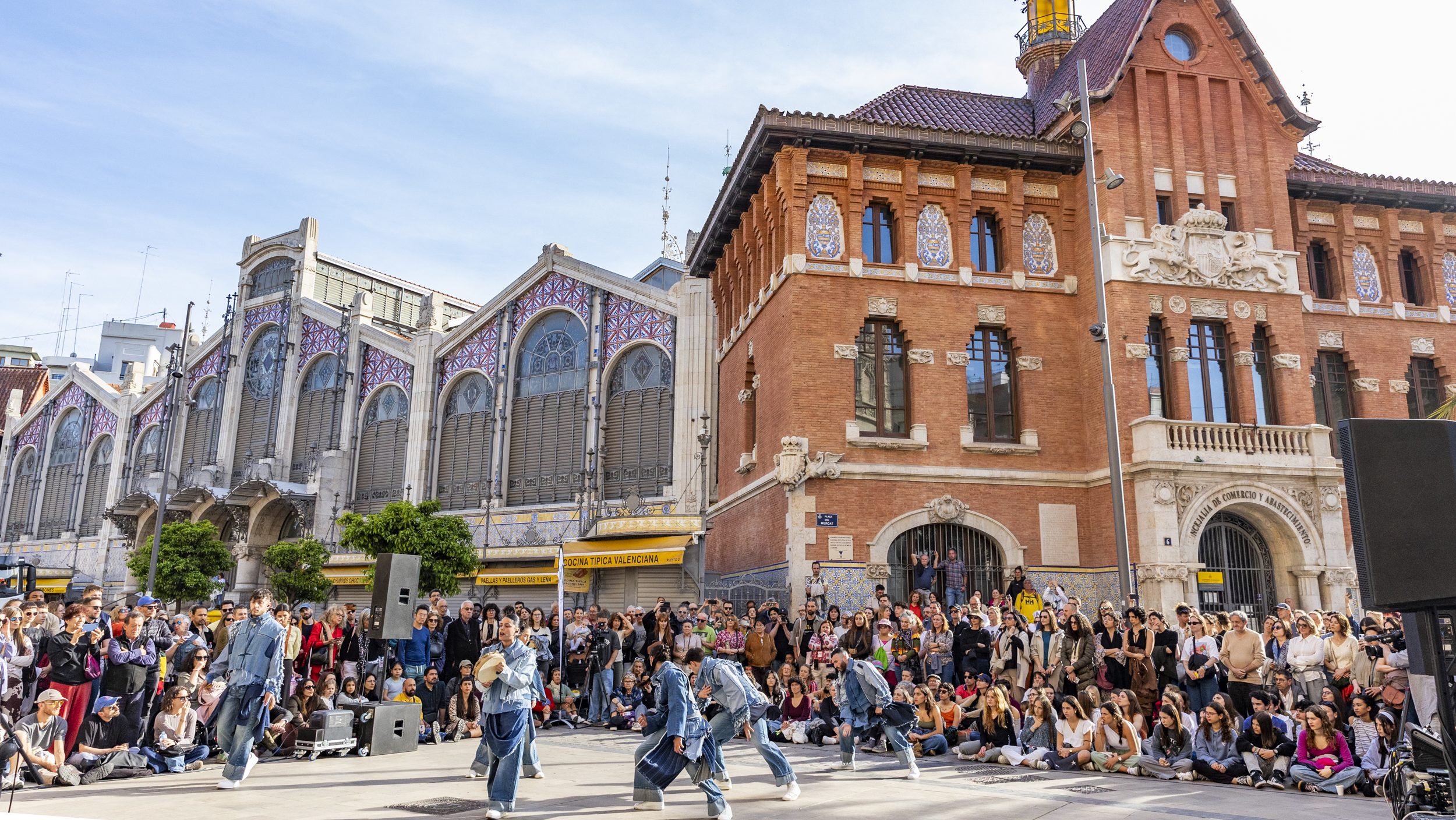 Entre las propuestas que invitaron a la interacción se encontraron la acción guiada ‘¡La fiesta!’, del Colectivo Dánzate; y la ya habitual batalla urbana, que congregó en la plaza de la Virgen a un millar de aficionados en un nuevo concurso de estilos que reunió a la comunidad dancística valenciana.
