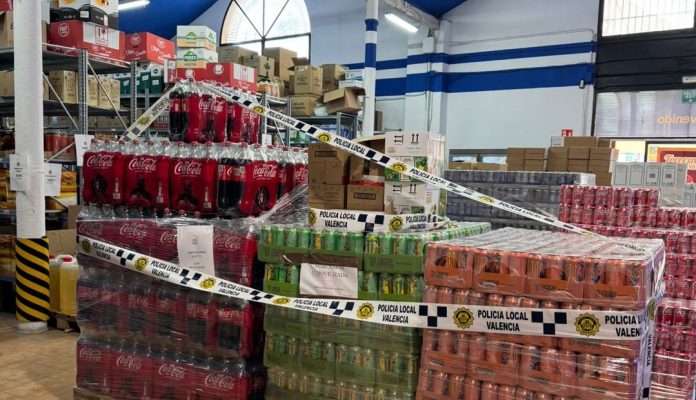 La Policía Local de Valencia decomisa en un almacén del marítimo 73.000 latas de refrescos y 3.000 chocolatinas sin etiquetado. Son productos de marcas populares como Coca-Cola, Monster Energy, Fanta, y Kinder que infringen las normas de Consumo.
