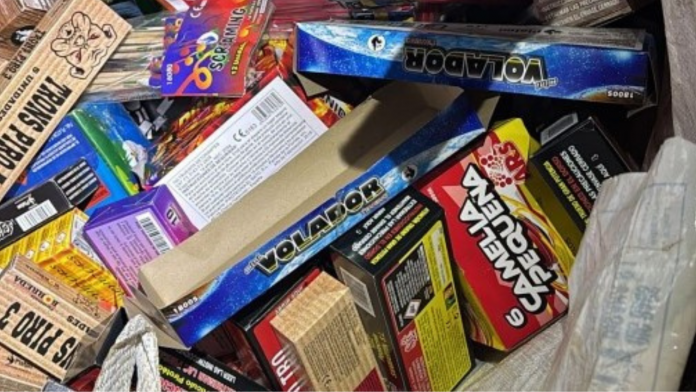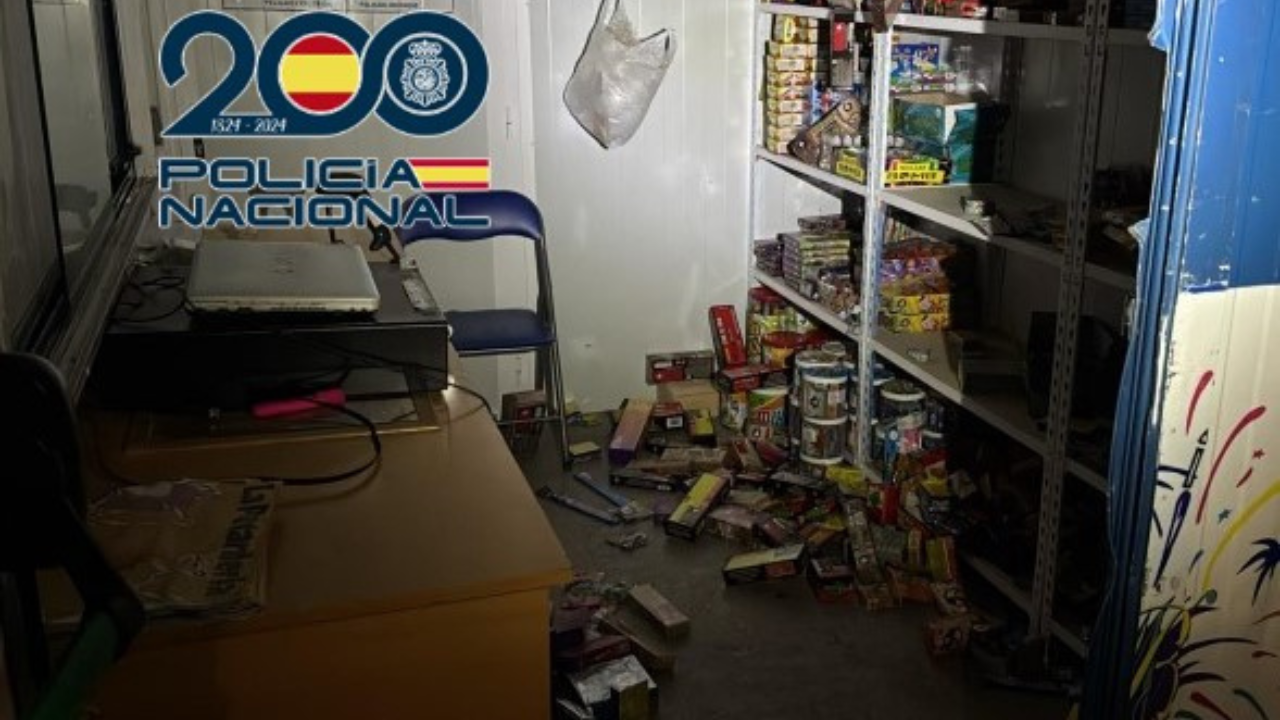 En dicho momento, sorprendieron a un varón intentando ocultarse tras una furgoneta. Allí detectaron que la alarma provenía de un puesto de venta de material pirotécnico, ubicado justo al lado del sospechoso.