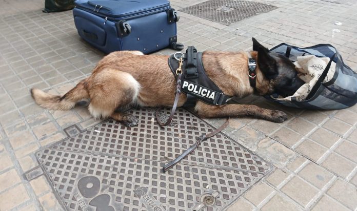También se persona en el lugar una patrulla de la Unidad Canina, UCAN, para realizar un registro del vehículo. El agente canino K9 ha inspeccionado varias maletas que llevaban en el coche y ha efectuado un marcaje positivo en una de ellas, concretamente en una bolsa de plástico que contenía; 20 g de Cocaína, 2,5 g de Cristal MMD, 7 g de Éxtasis, 12 g de TUSI y 1,3 g de Ketamina.