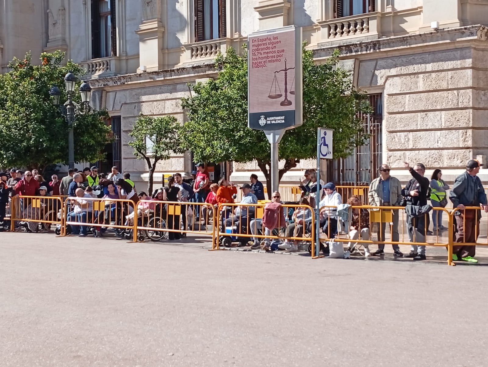 El público espera en la Plaza del Ayuntamiento al comienzo de la Entrada de Bandas.
