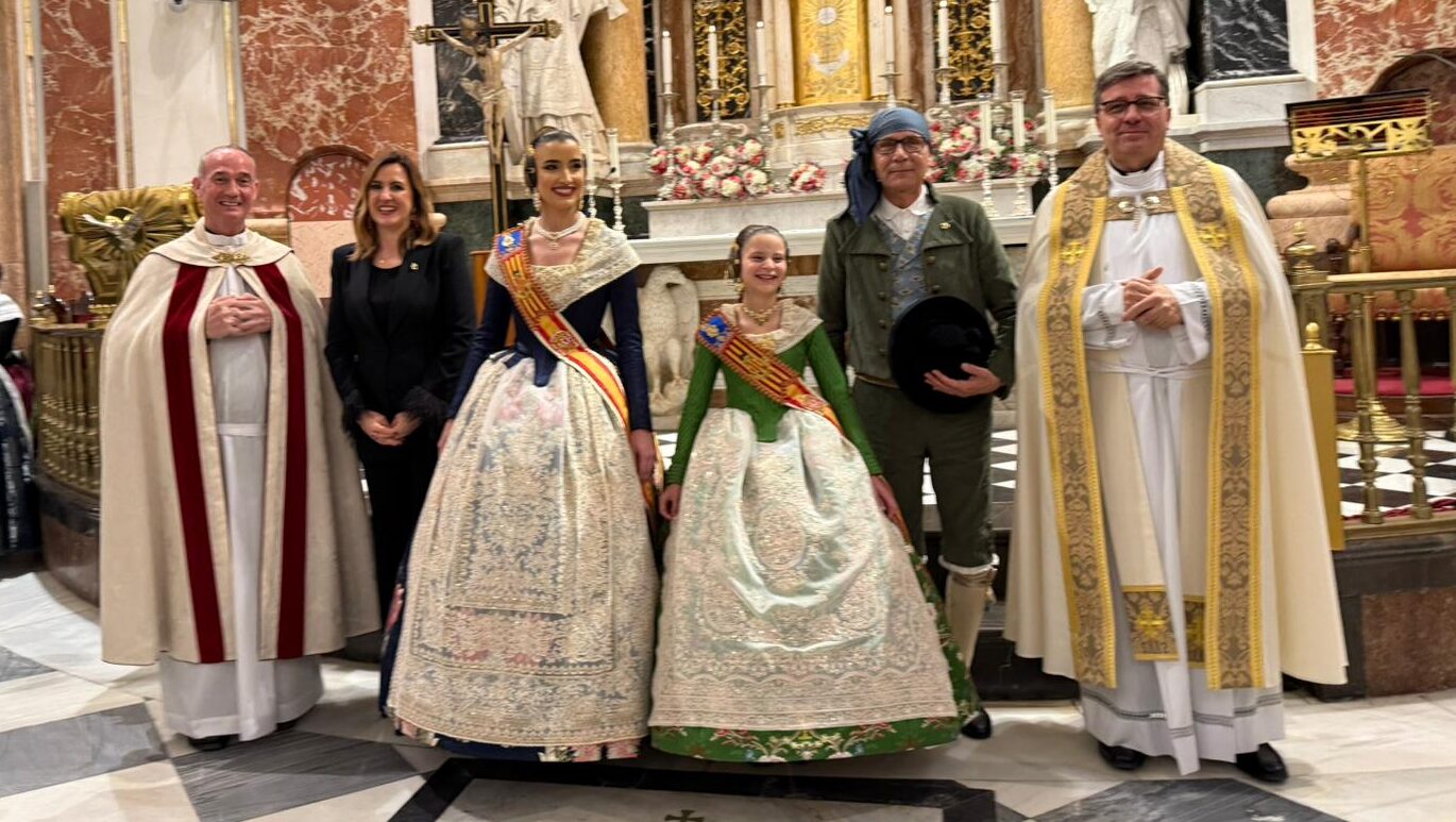 Marta Mercader y Carmen Prades han visitado la basílica para realizar la tradicional ofrenda y pedir a la Virgen de los Desamparados que estas Fallas sean inolvidables para todos los valencianos y las valencianas.
