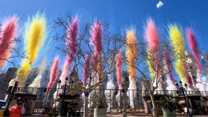 Valencia ha vuelto a vibrar hoy con una mascletà de alta intensidad en la Plaza del Ayuntamiento. La encargada de este impresionante disparo ha sido la reconocida Pirotecnia Crespo, de Alzira, que ha dejado al público sin aliento con su característico terremoto final, bautizado como el «terremoto de la araña infernal con doble efecto trueno».