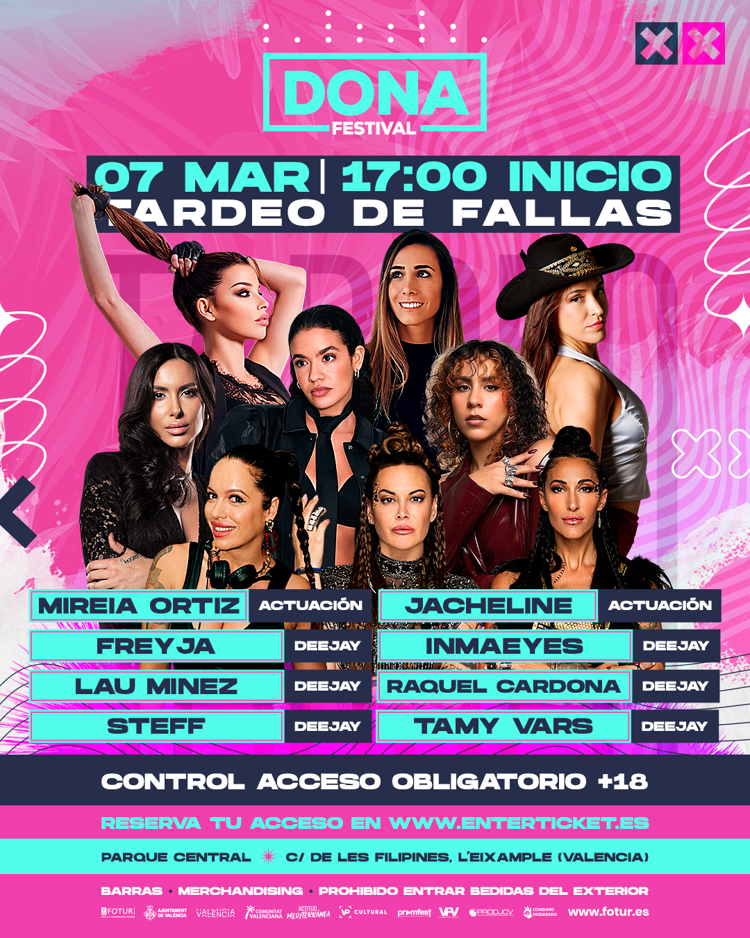 El Dona Festival regresa a Valencia. El sábado 7 de marzo el Parc Central acogerá este evento musical que se reafirma como pionero en España siendo el primer festival de gran formato con un cartel compuesto íntegramente por mujeres artistas, cantantes y DJs. El festival tiene un formato tardeo festivalero, dando comienzo a las 17:00 horas.